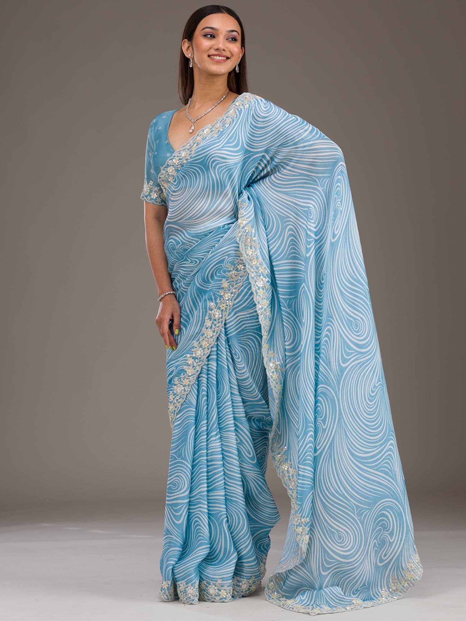 Sky Blue Zari Georgette Saree with Unstitched Blouse