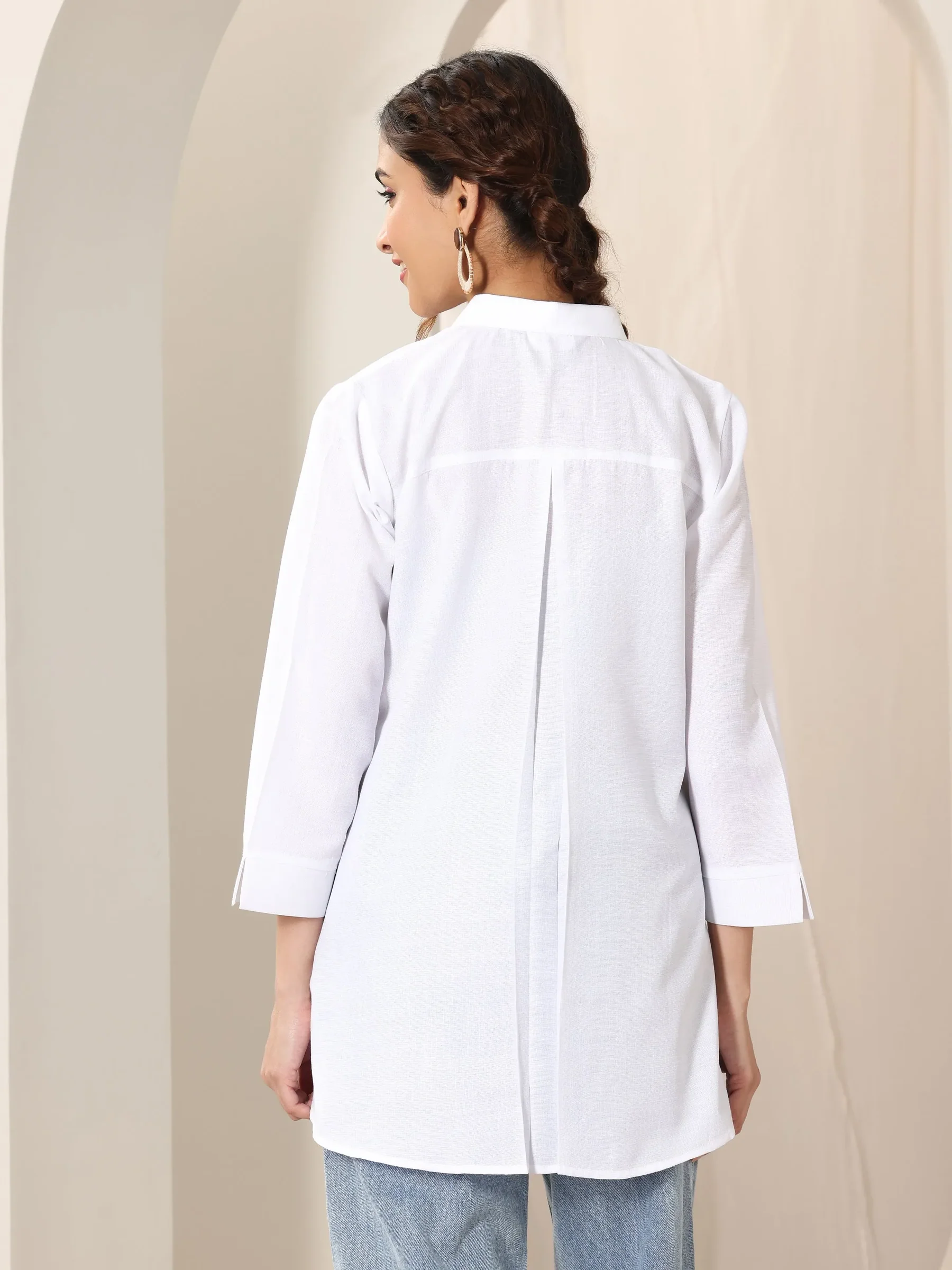 White Cotton Blend Straight Short Kurti