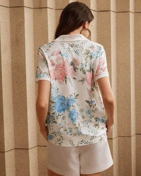 Women Floral Print Regular Fit Polo T-Shirt